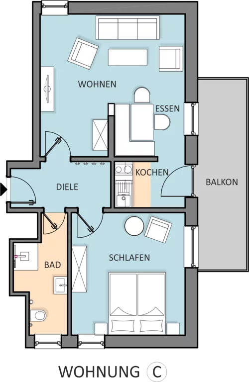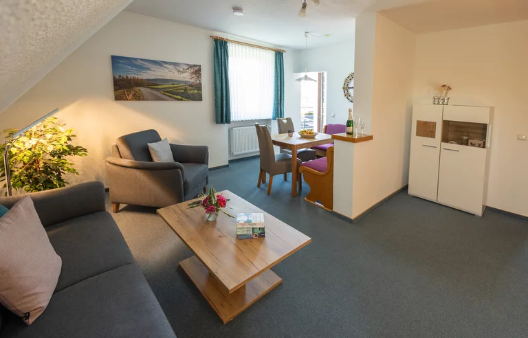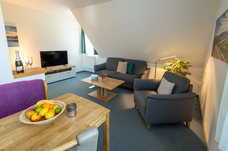 Unsere moderne Ferienwohnung ist der perfekte Rückzugsort für bis zu drei Personen. Mit einer Fläche von 55 m² bietet sie ausreichend Platz für zwei Erwachsene und einem Kind oder zwei Erwachsene und einem Begleiter.